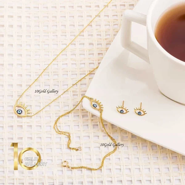 نیم ست طلا زنانه طرح چشم نظر میناکاری
