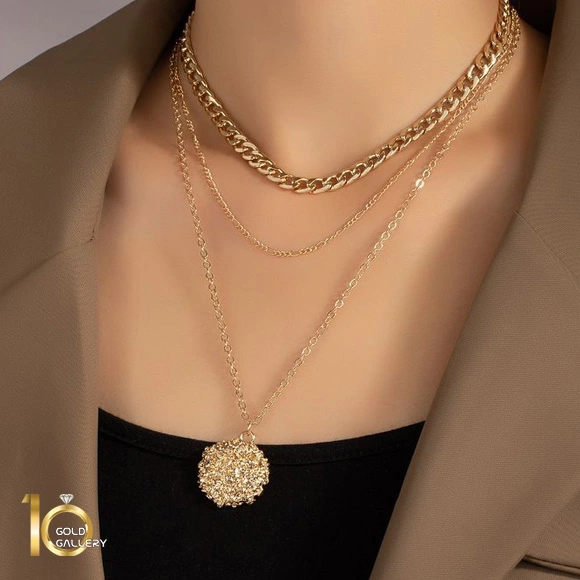 برای انتخاب گردنبند برای این مدل، گردنبندی با یک زنجیر ساده طلایی یا گردنبندهای چوکر، انتخاب خوبی هستند. همچنین گردنبندهای چندلایهای با اندازه متوسط و کوتاه هم با یقه گرد لباستان بهراحتی ست میشوند.