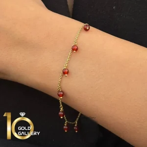 دستبند سنگ مردانه با پلاک طلا طرح مهره