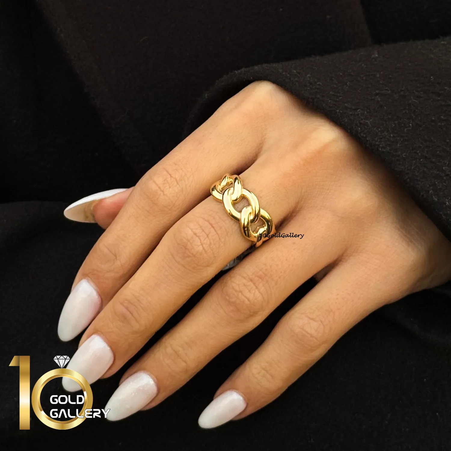تمامی حلقه ها در انتهای رکاب به یکدیگر متصل هستند و امکان جدا شدن ندارند.پهنای روی انگشتر 2 سانت می باشد.سفارش انگشتر در دو رنگ طلایی و رز گلد و از سایز 52 تا 60 گرفته میشود.*زمان ساخت سفارش های رزگلد در صورت موجود نبودن 15 الی 20 روز کاری می باشد.**در تمام مدل های سفید، طلا آبکاری سفید بوده و پایه ی آن طلای سفید نمی باشد.*
