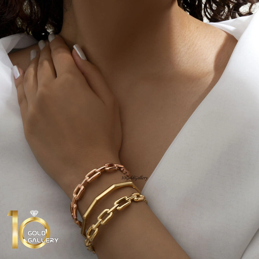 طرح هندسی و توری شکل بودن داخل این دستبند از چیزهایی ست که در ابتدا توجه زیادی به خود جلب میکند. دستبندی با طرحی مدرن و ساده که مناسب استفاده ی هر روزه می باشد. این دستبند را میتوان به صورت تک و یا با دیگر دستبند های مشابه استفاده کرد.