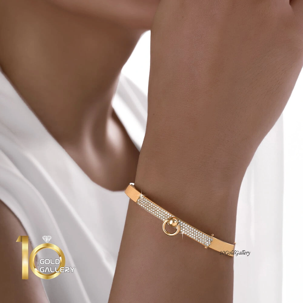 دستبند النگویی طلا طرح هرمس مدل نگین دار