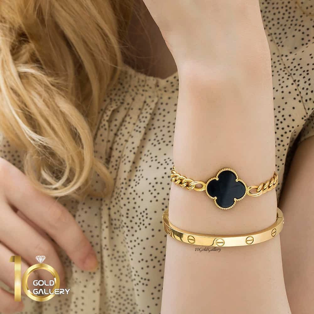 دستبند فوق از کالکشن معروف “LOVE” برند کارتیه می باشد که همیشه طرفداران خودش را داشته و نمادی از عشق جاویدان می باشد که فقط با کلید مخصوص خودش باز و بسته میشود.