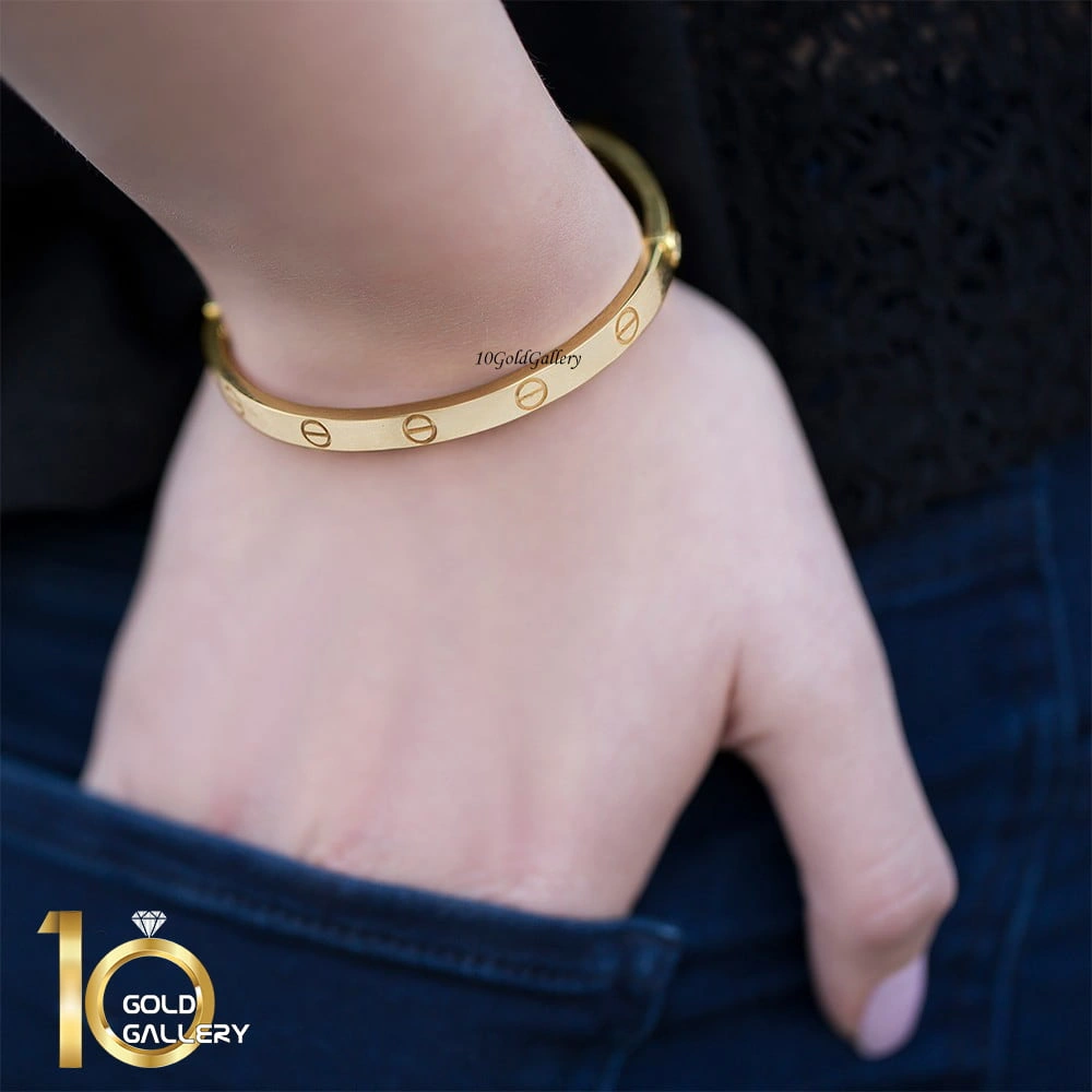 پیچ دستبند کارتیه طرح لاو تا انتها باز نشود و پیچ به هیچ وجه از جای خود در نیاید، کافیست با چرخاندن یک دور پیچ دستبند را باز کنید.