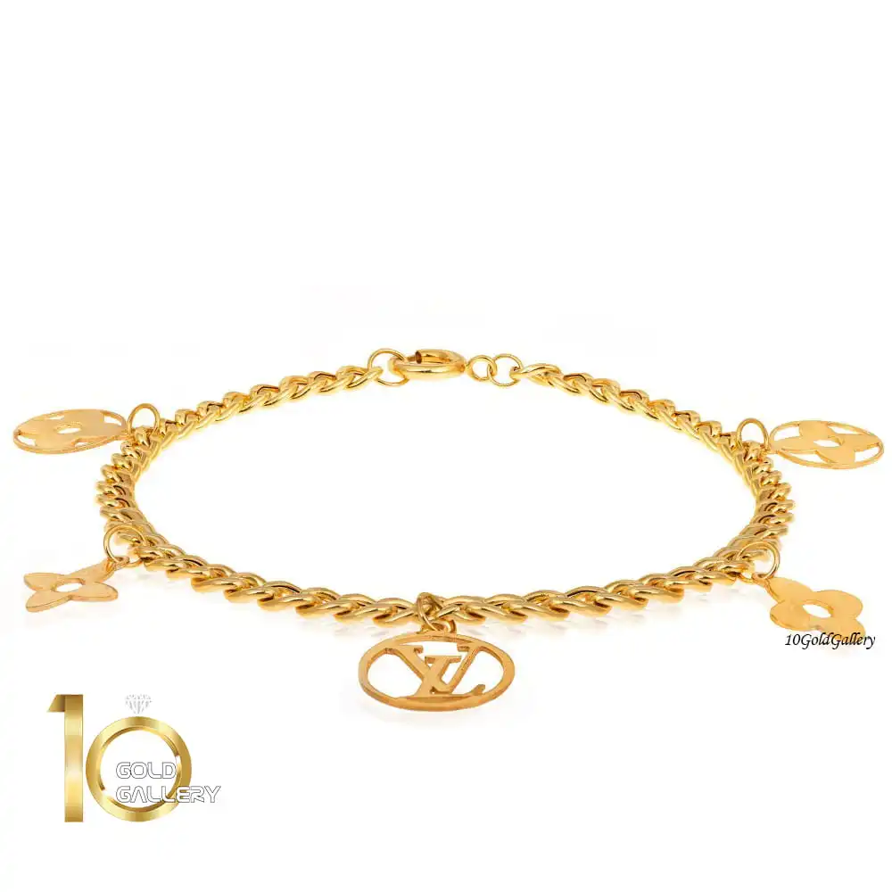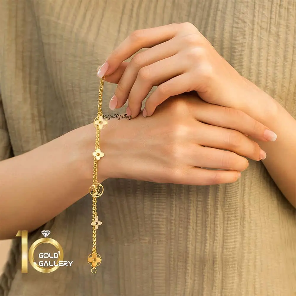 دستبند طلا با زنجیر کارتیر و پلا های طرح لویی ویتون