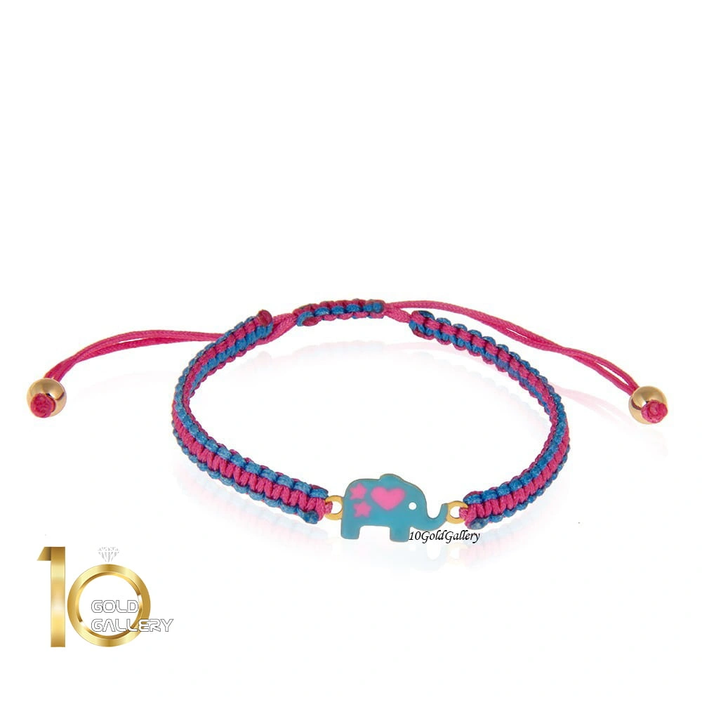 دستبند بافت کودک با پلاک طلا طرح فیل میناکاری کد KB313