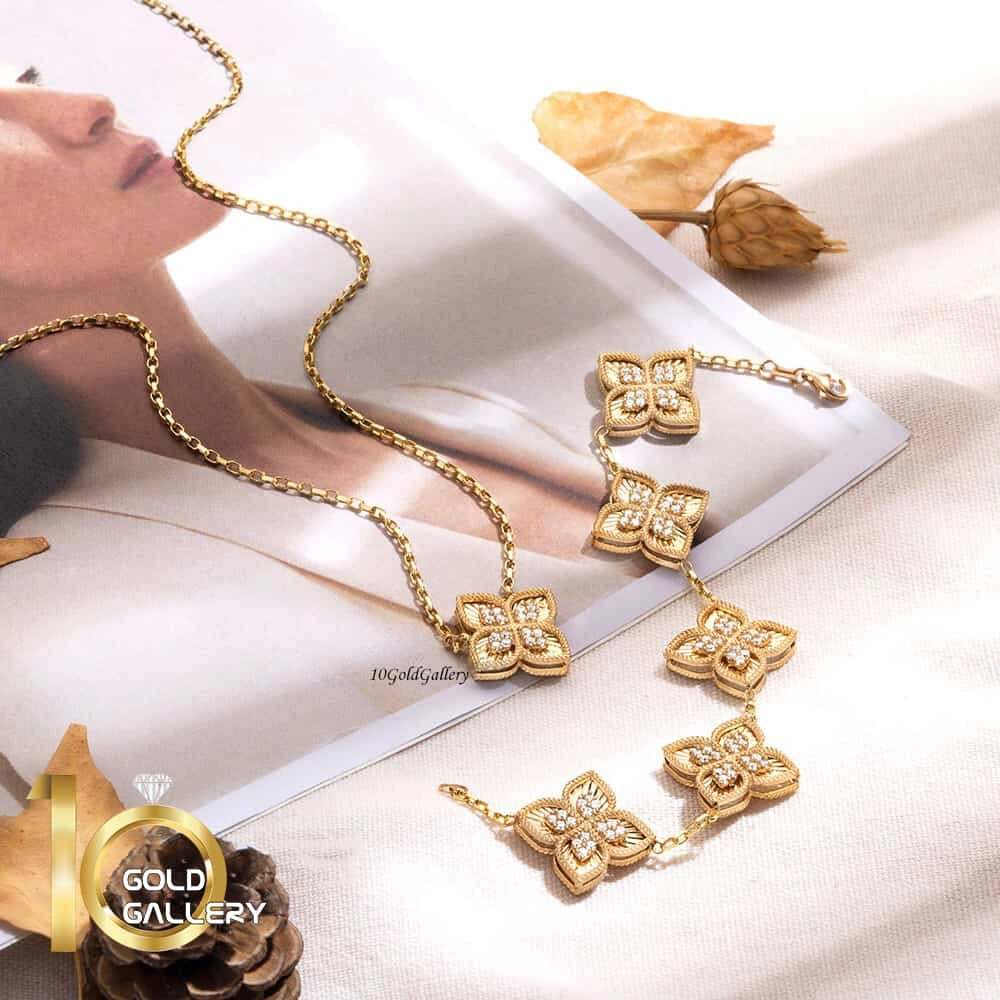 دستبند طلا طرح روبرتو کوین مدل پنج گل