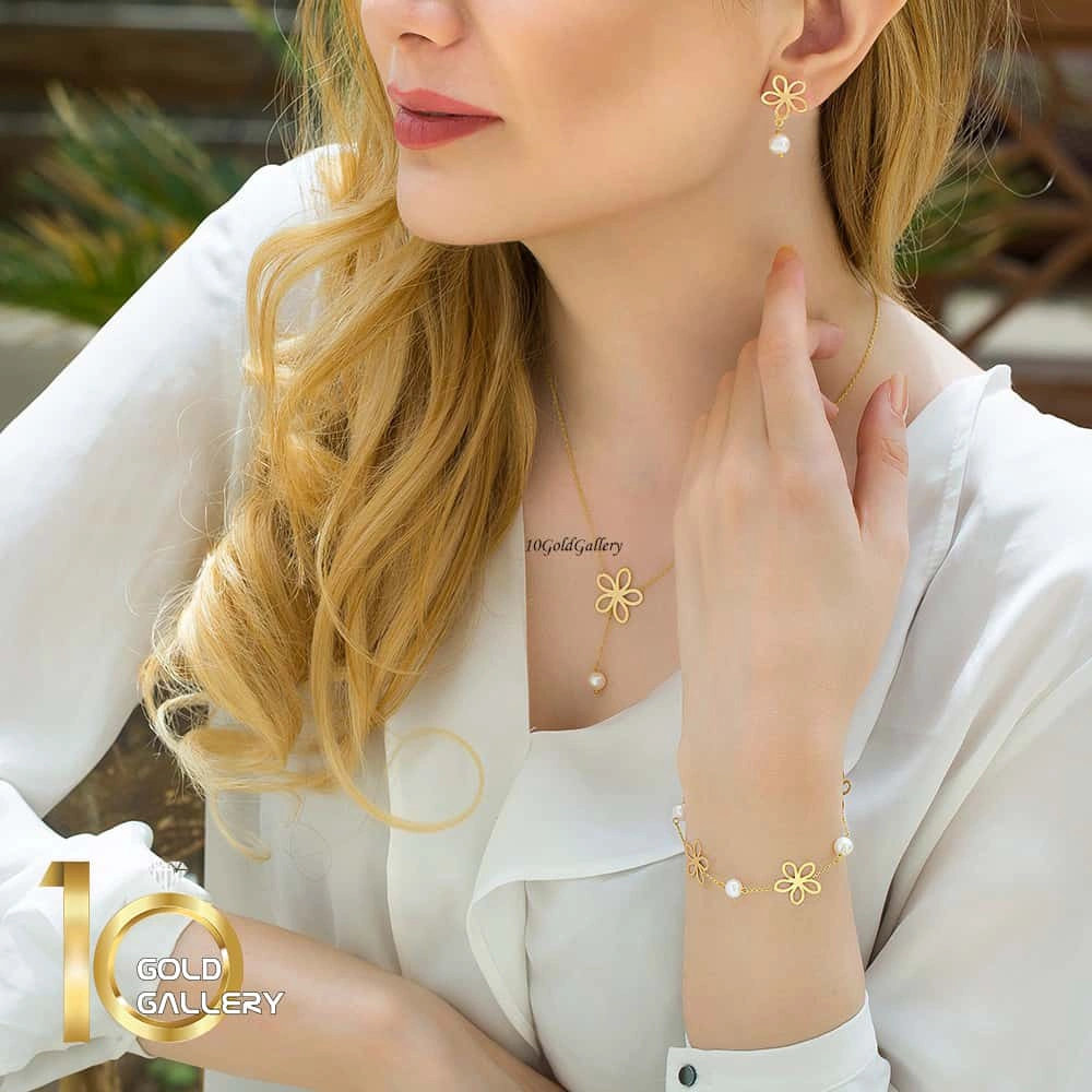 دستبند دارای 4 مروارید و 4 گل می باشد
