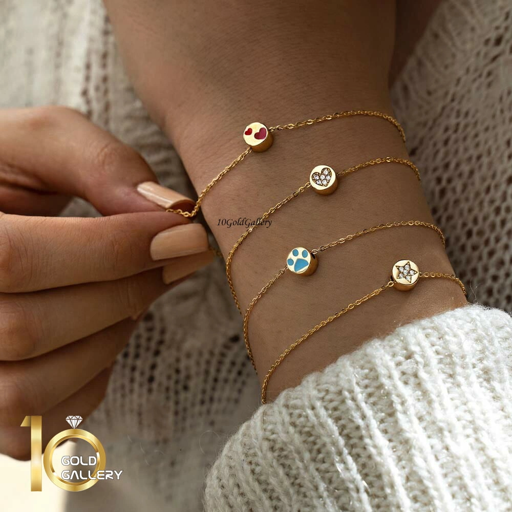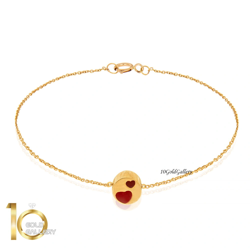 دستبند طلا با پلاک طرح قلب میناکاری