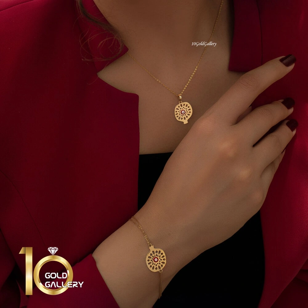 دستبند طلا طرح انار با چشم نظر میناکاری