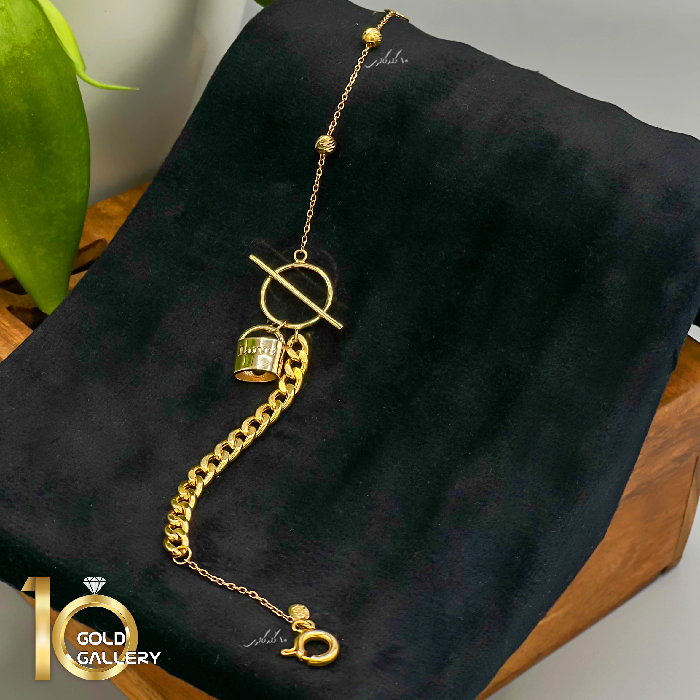 دستبند طلا ترکیبی کارتیه با قفل تی و تیفانی کد 1WBB021