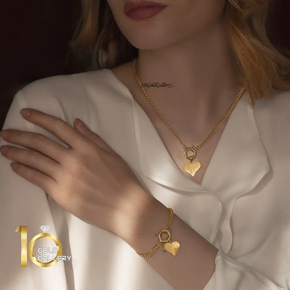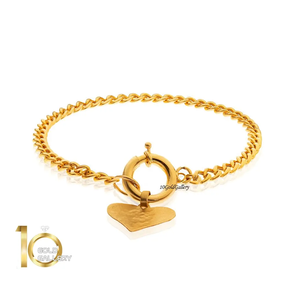 دستبند طلا طرح زنجیر کارتیر با آویز قلب چکشی دست ساز