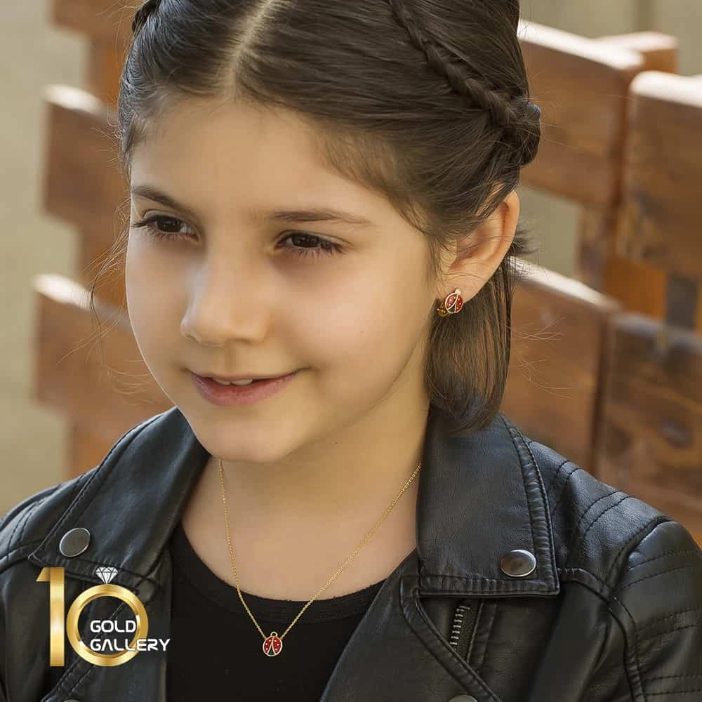 نیم ست طلا کودک طرح کفشدوزک میناکاری