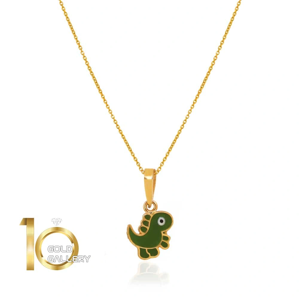 گردنبند طلا کودک طرح دایناسور میناکاری