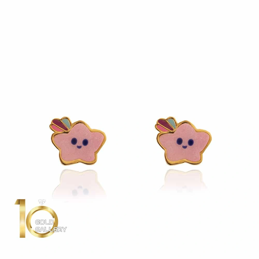 گوشواره میخی طلا کودک طرح ستاره میناکاری