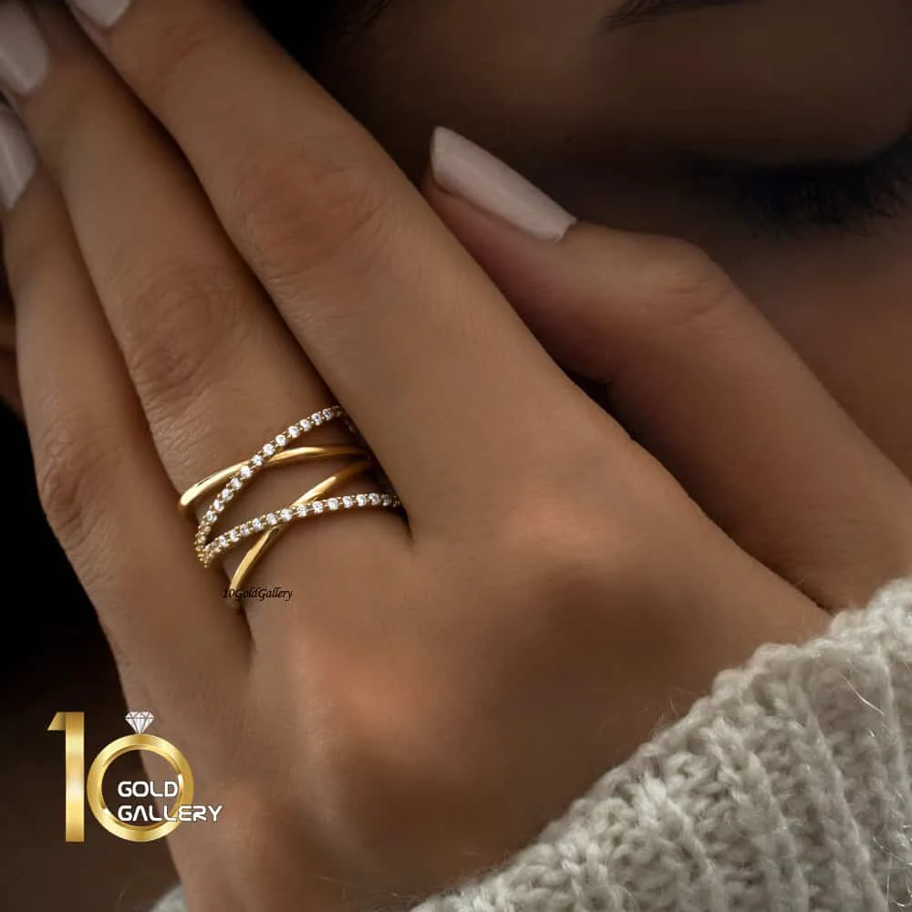انگشتر طلا طرح ضربدری ساده و نگیندار کد CR570
