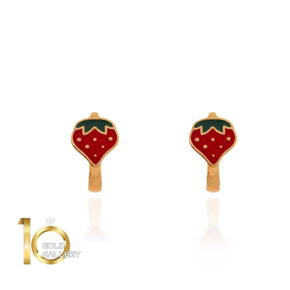 گوشواره طلا کودک طرح توت فرنگی میناکاری