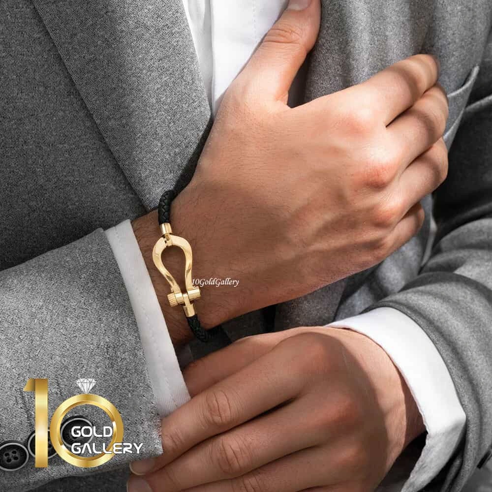 دستبند چرم مردانه با پلاک طلا طرح فرد (سایز بزرگ) کد MB129