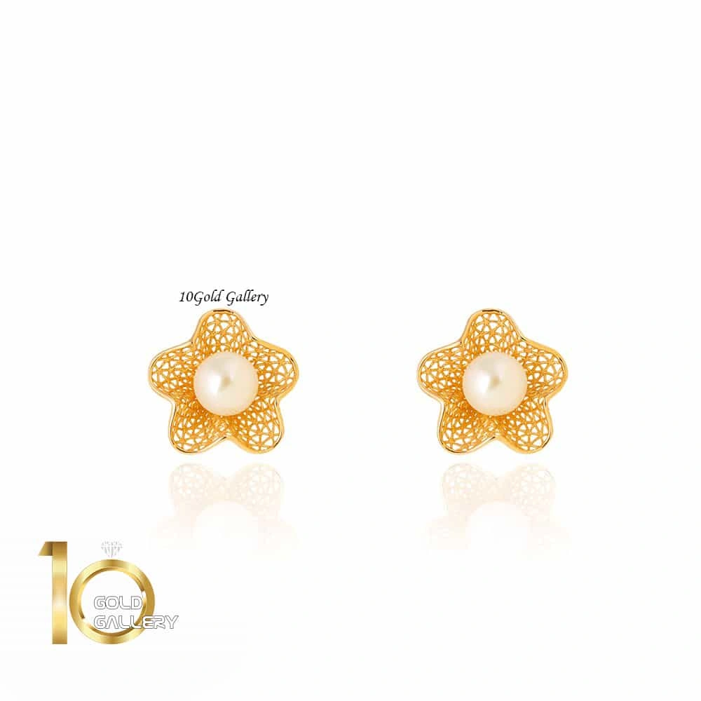 گوشواره طلا طرح گل فیوژن با مروارید کد XE272