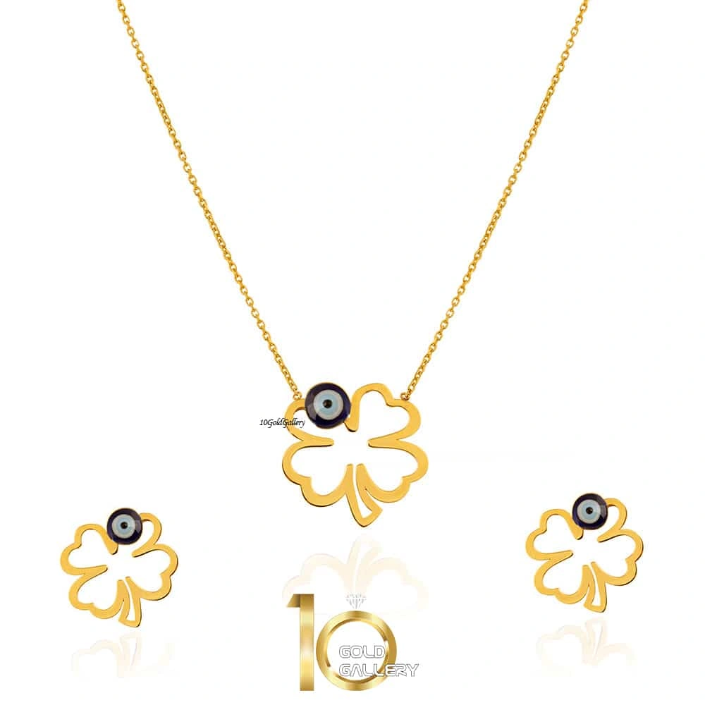 نیم ست طلا طرح شبدر با چشم نظر کد LS620