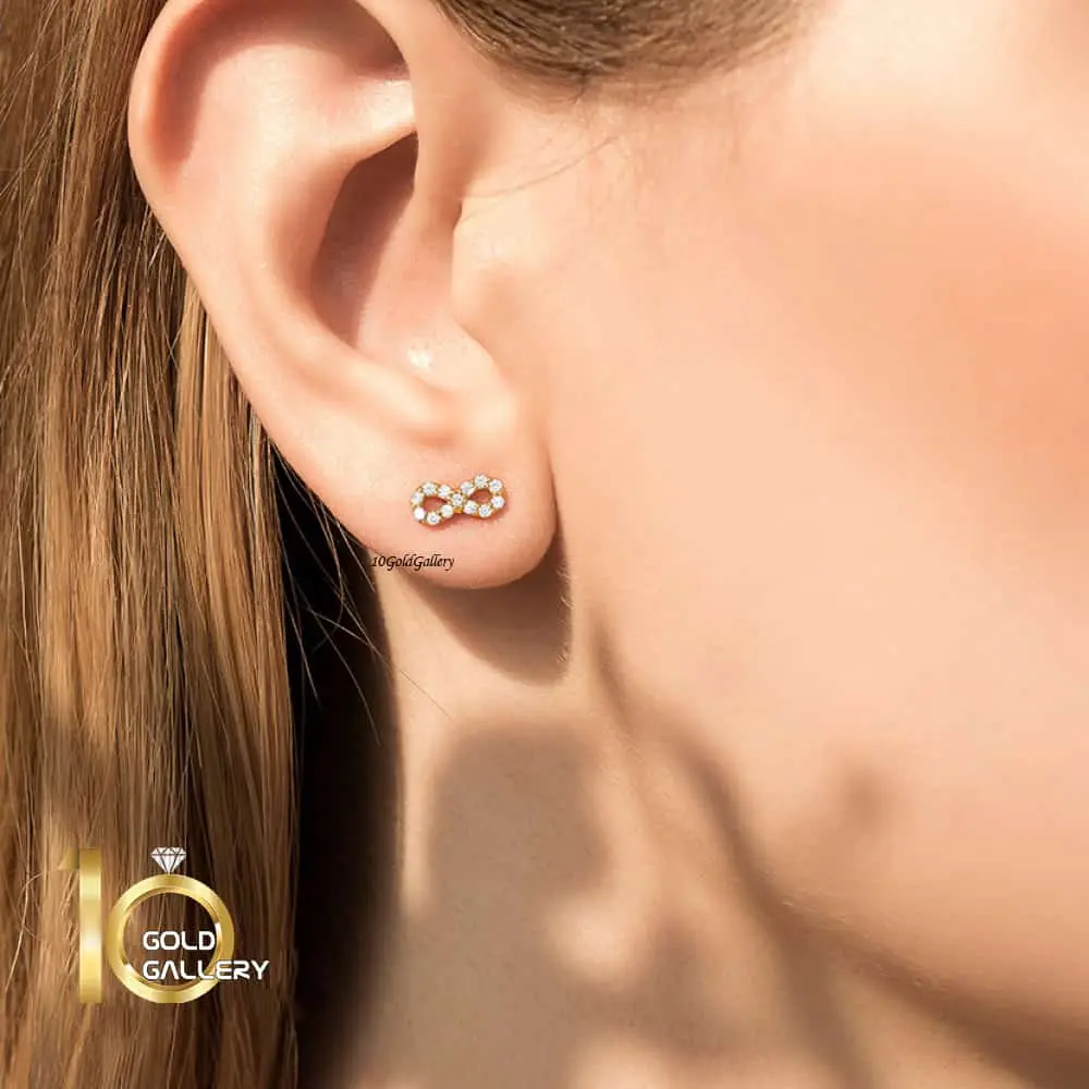 گوشواره میخی طلا طرح بینهایت نگیندار از کالکشن ولنتاین