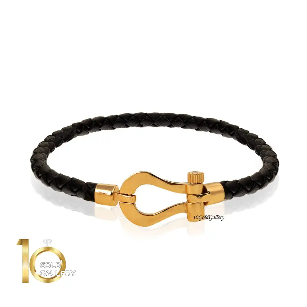 دستبند چرم زنانه با پلاک طلا طرح فرد (پلاک کوچک) کد XB850
