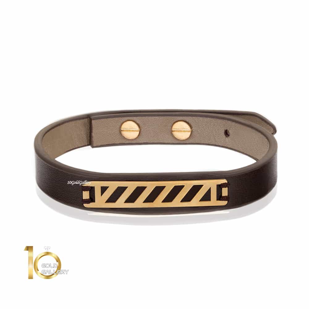 دستبند چرم مردانه با پلاک طلا