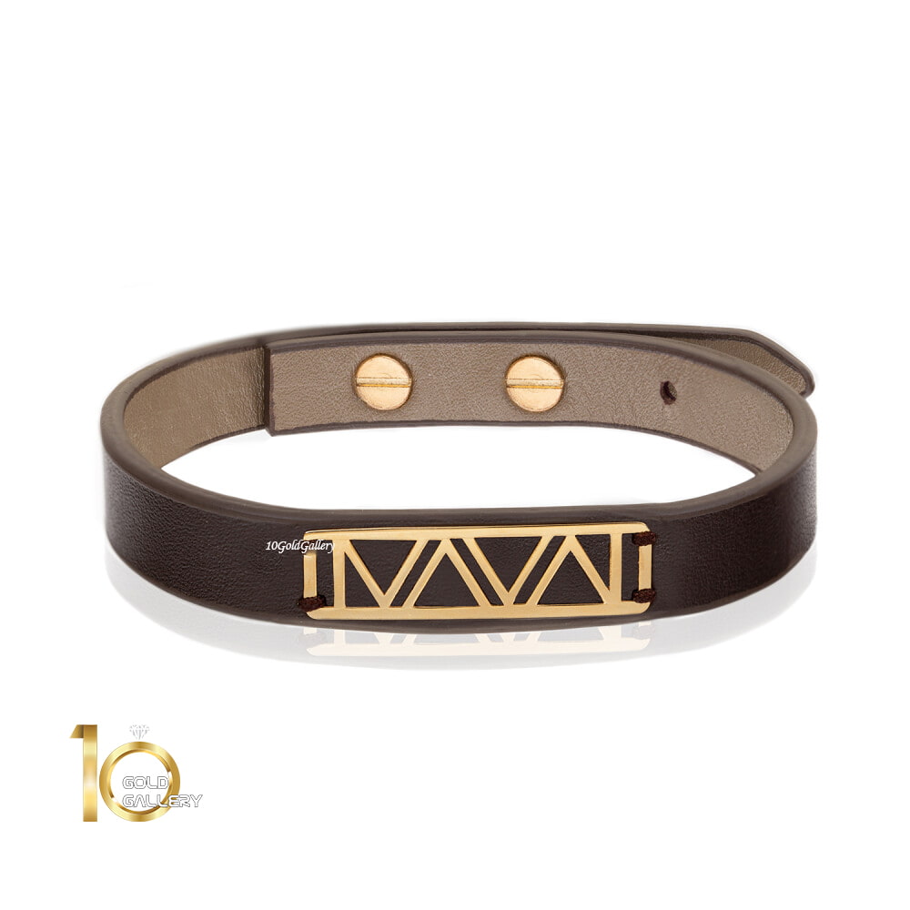 دستبند چرم مردانه با پلاک طلا طرح زنجیر کارتیه (کارتیر)