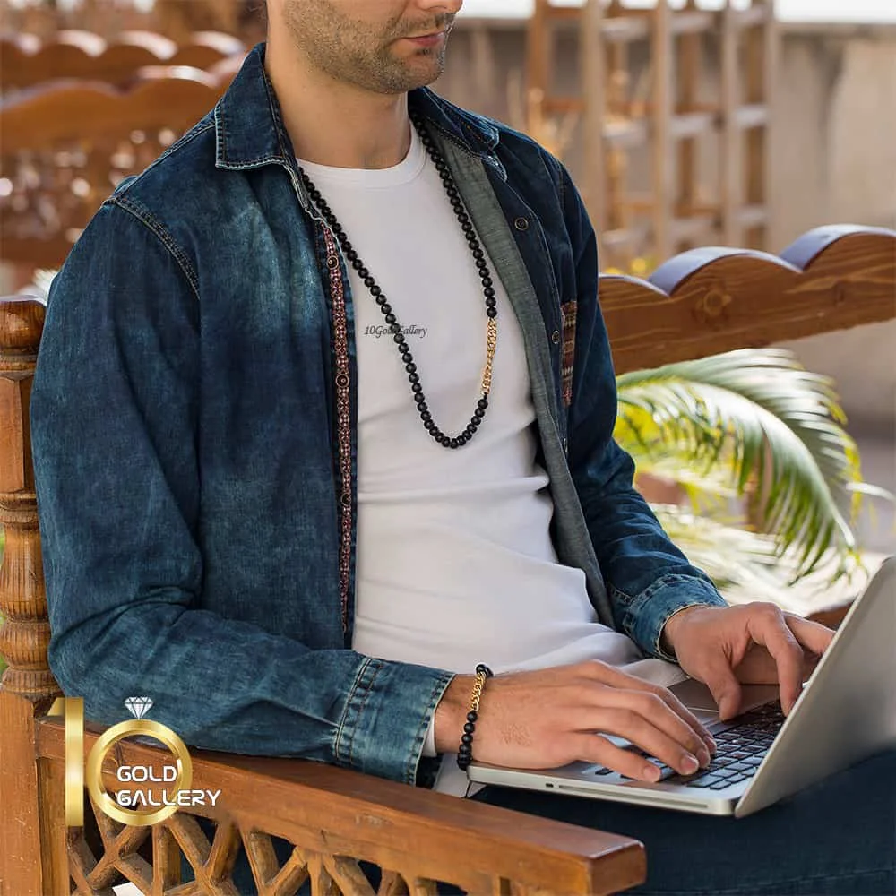 گردنبند سنگ مردانه با پلاک طلا طرح کارتیه کد MN702