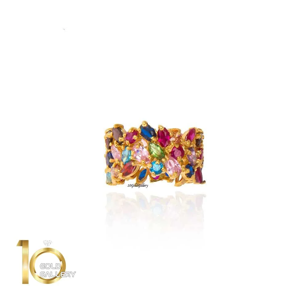 انگشتر طلا زنانه طرح مولتی کالر (پهن)