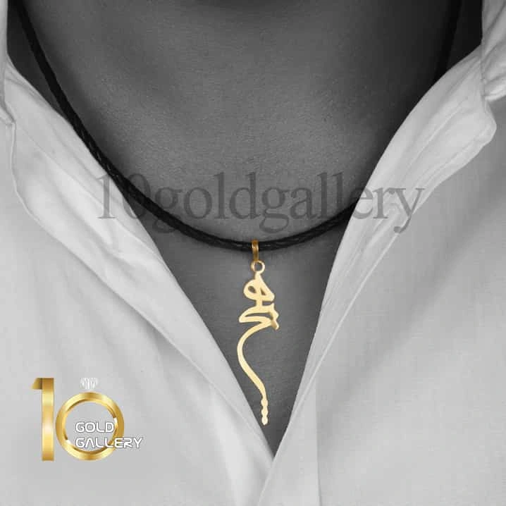 گردنبند چرم مردانه با آویز طلا طرح هیچ