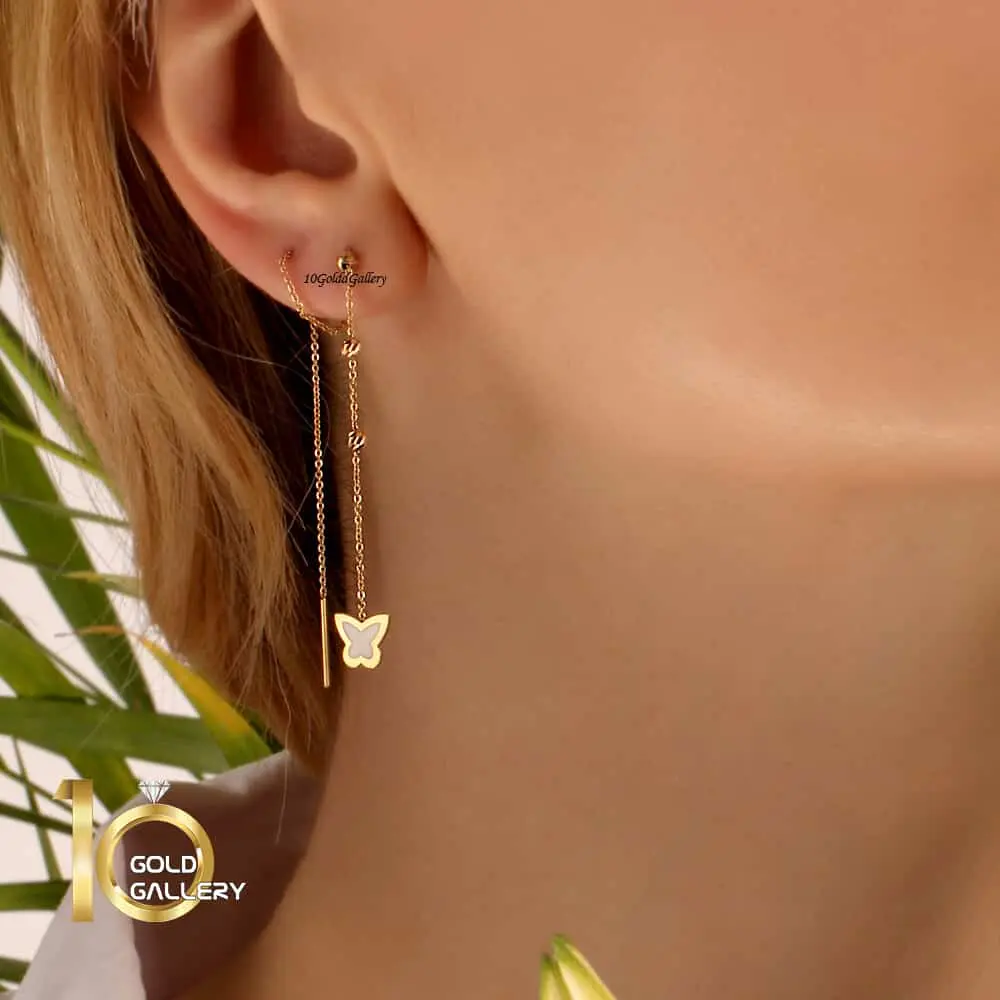 گوشواره بخیه ای طلا طرح پروانه میناکاری