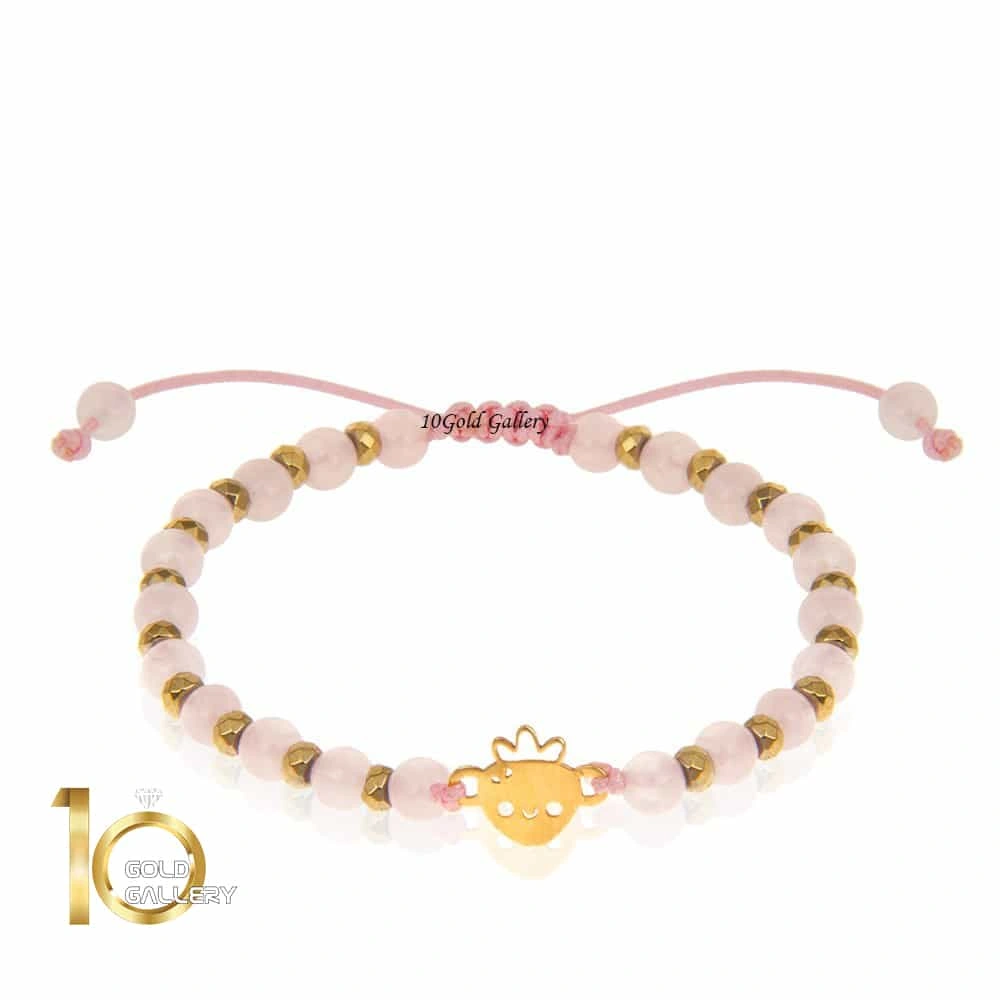 دستبند سنگ کودک با پلاک طلا طرح توت فرنگی