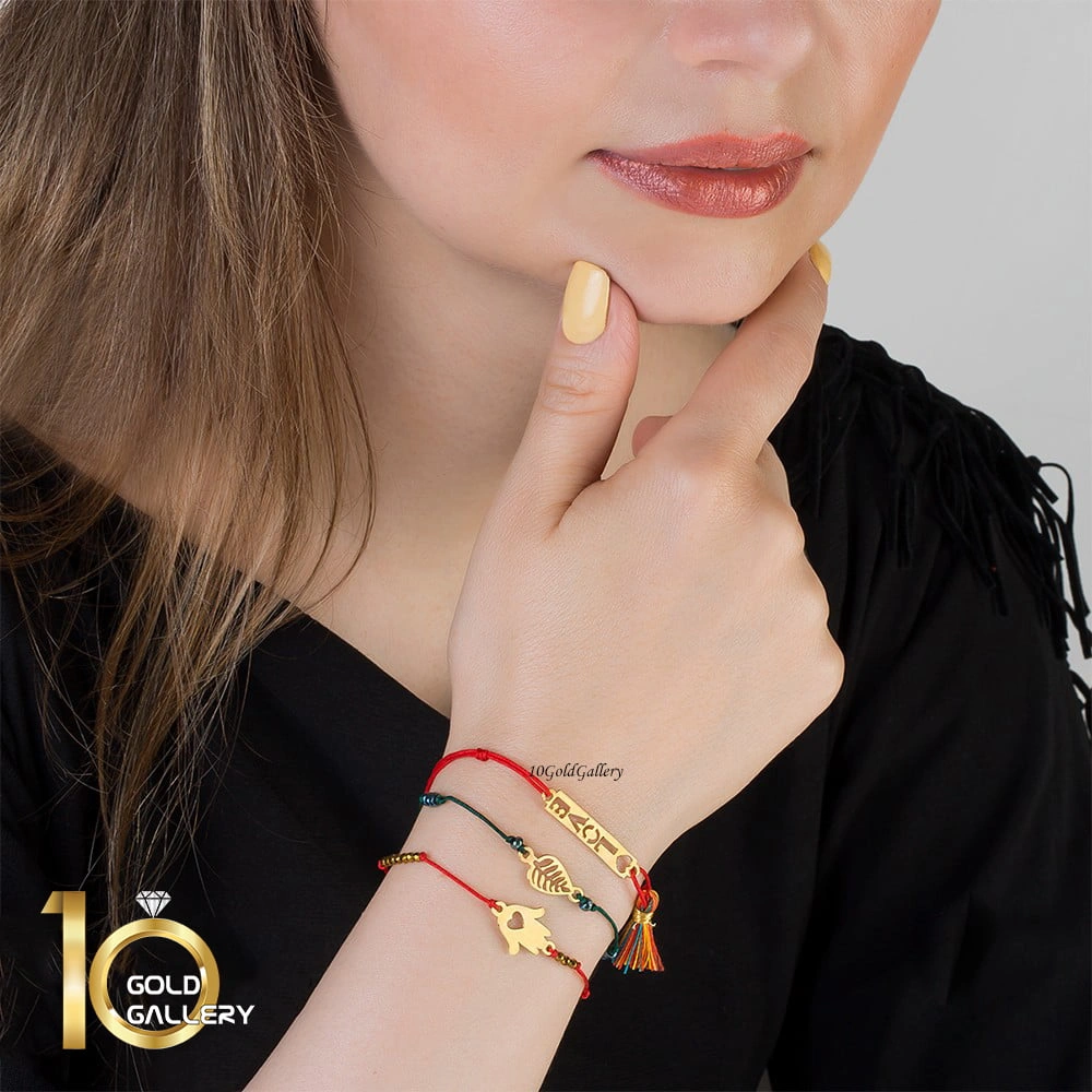 دستبند سنگ و بافت زنانه با پلاک طلا طرح برگ کد XB980