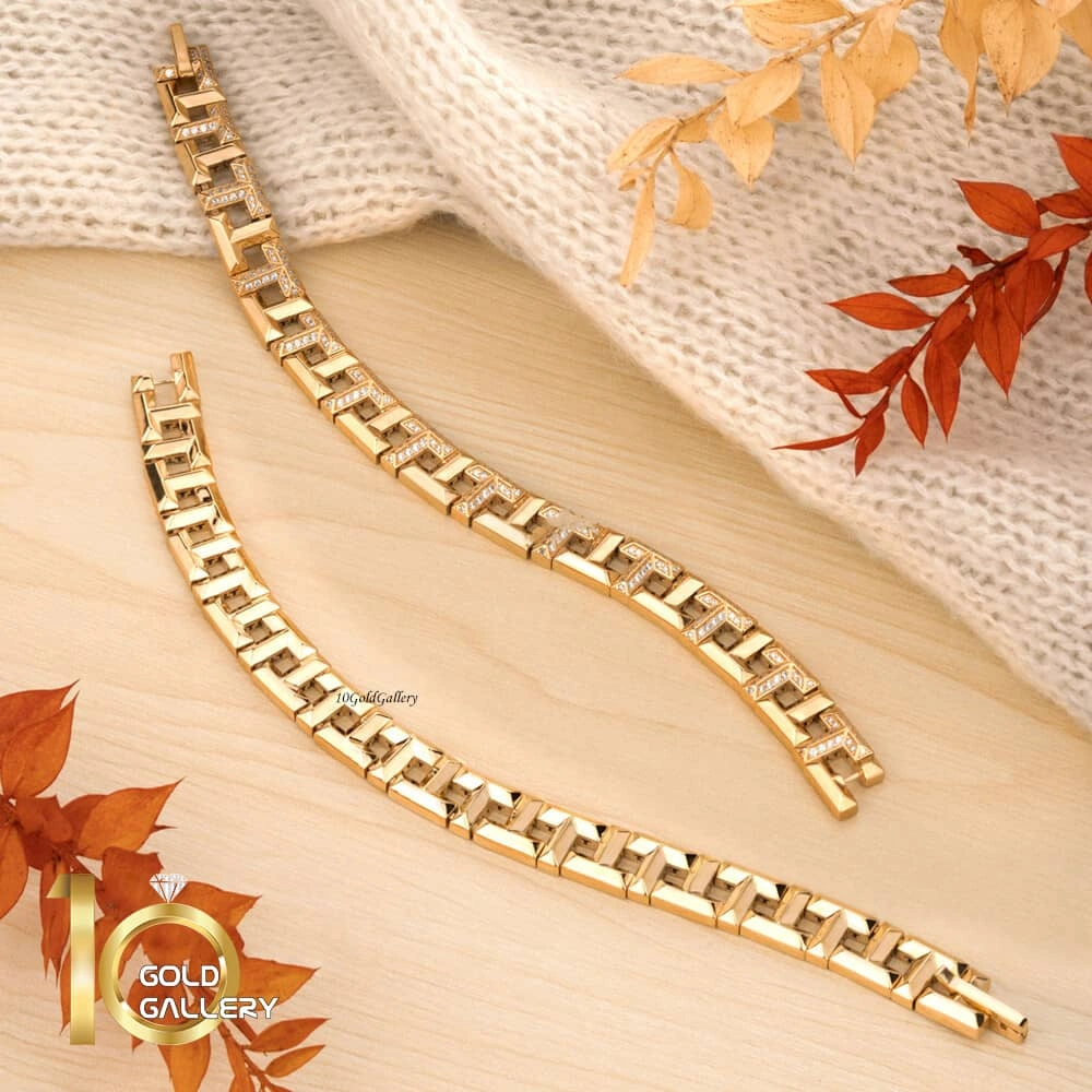 دستبند طلا طرح تیفانی (پهن) در دو مدل ساده و نگین دار