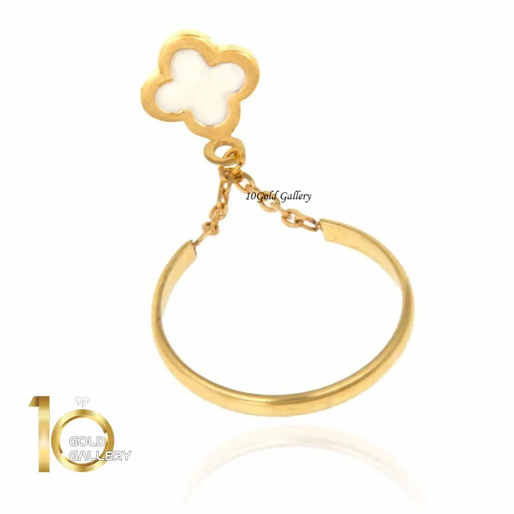 انگشتر طلا زنانه با آویز طرح ونکلیف میناکاری