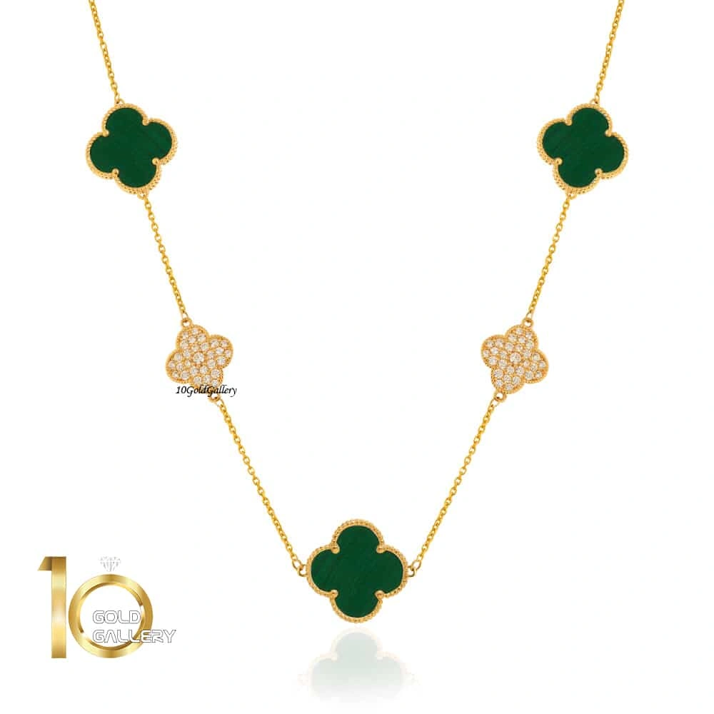 گردنبند طلا طرح ونکلیف سنگخور و نگیندار