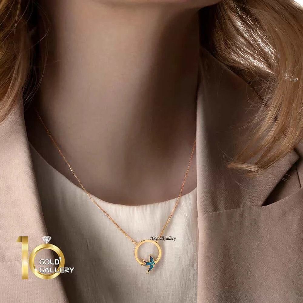 گردنبند طلا زنانه طرح پرستو میناکاری