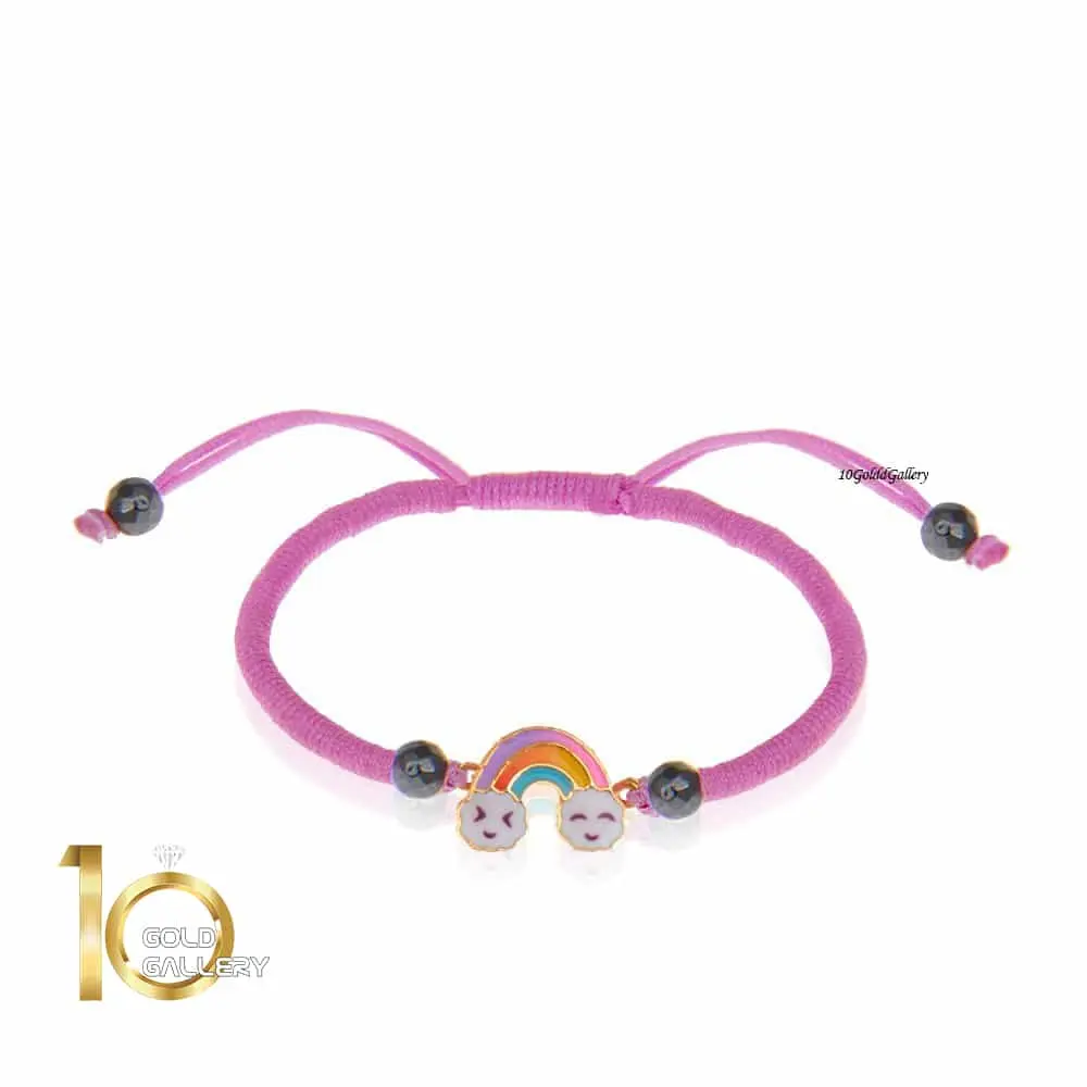 دستبند بافت کودک با پلاک طلا طرح رنگین کمان کد KB373