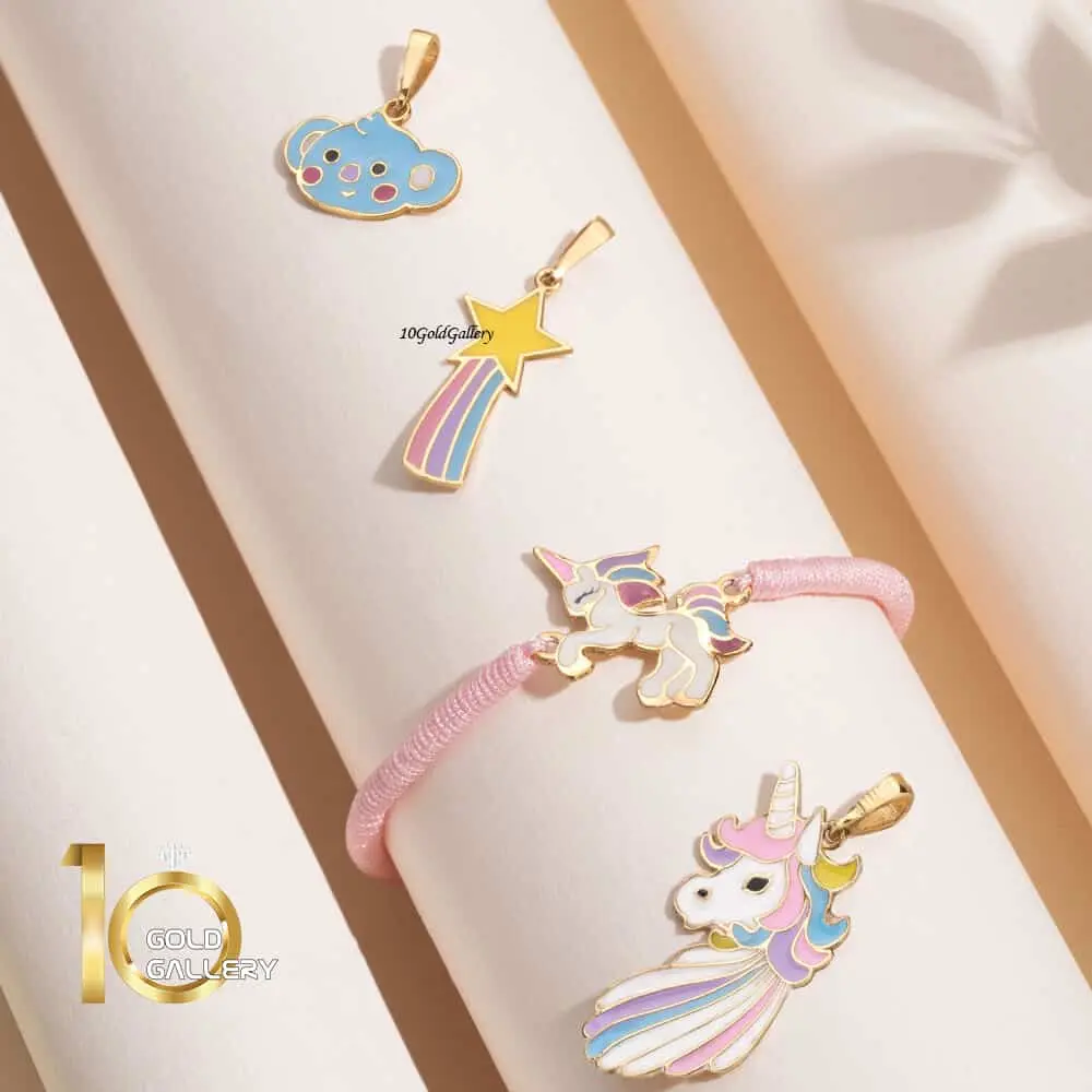 دستبند بافت کودک با پلاک طلا طرح یونیکورن کد KB387